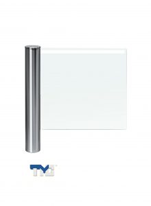 Może być montowana w parach naprzeciwko siebie. Przezroczysty szklany panel wyposażony jest w matowa taśmę wzdłuż górnej krawędzi.